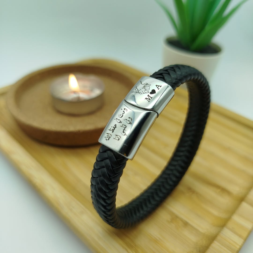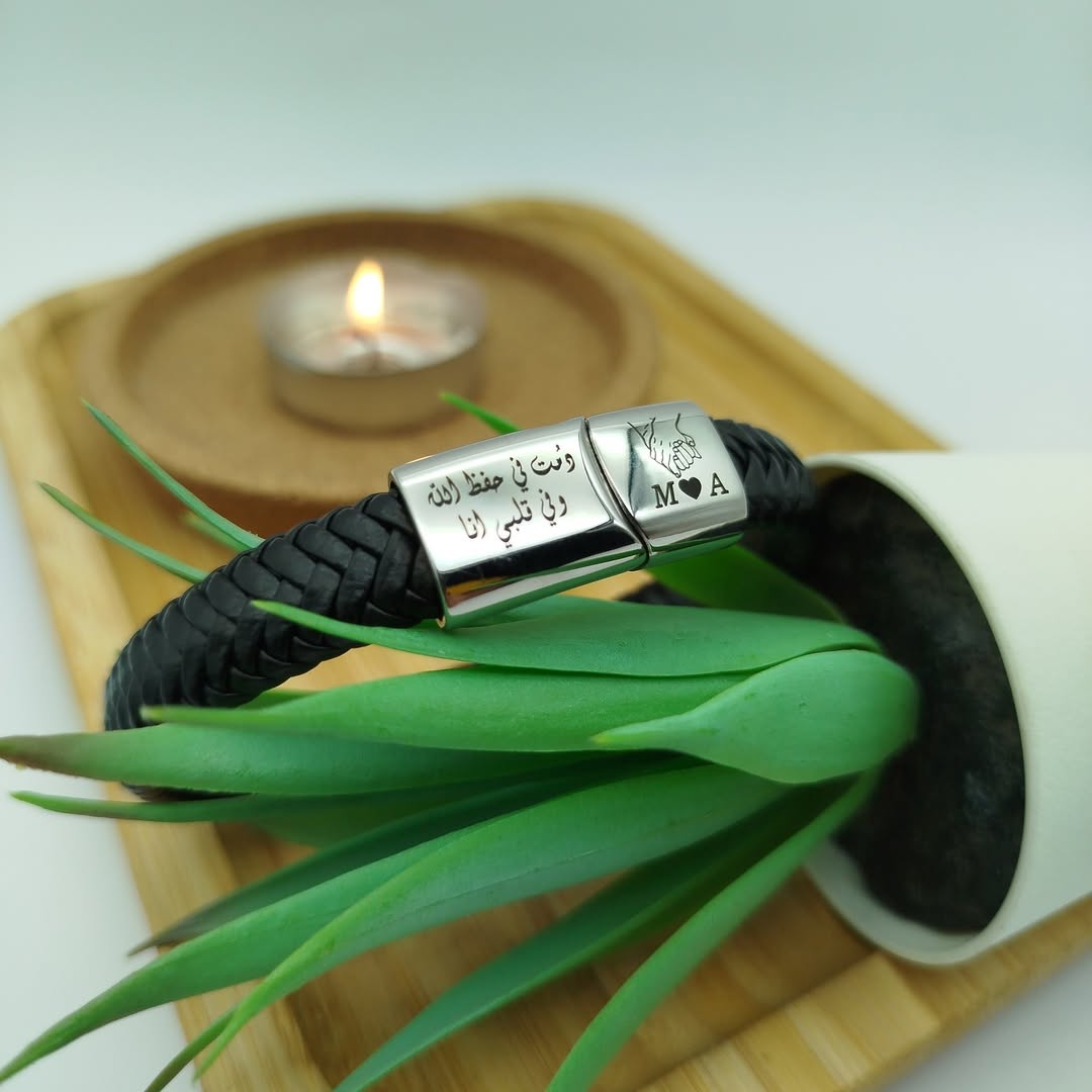 عبّر عن ستايلك بطريقتك الخاصة مع أسورة جلد أنيقة، فيها قفل معدني تقدر تنقش عليه اللي يعبر عنك – اسم، كلمة غالية، أو حتى تاريخ مميز.