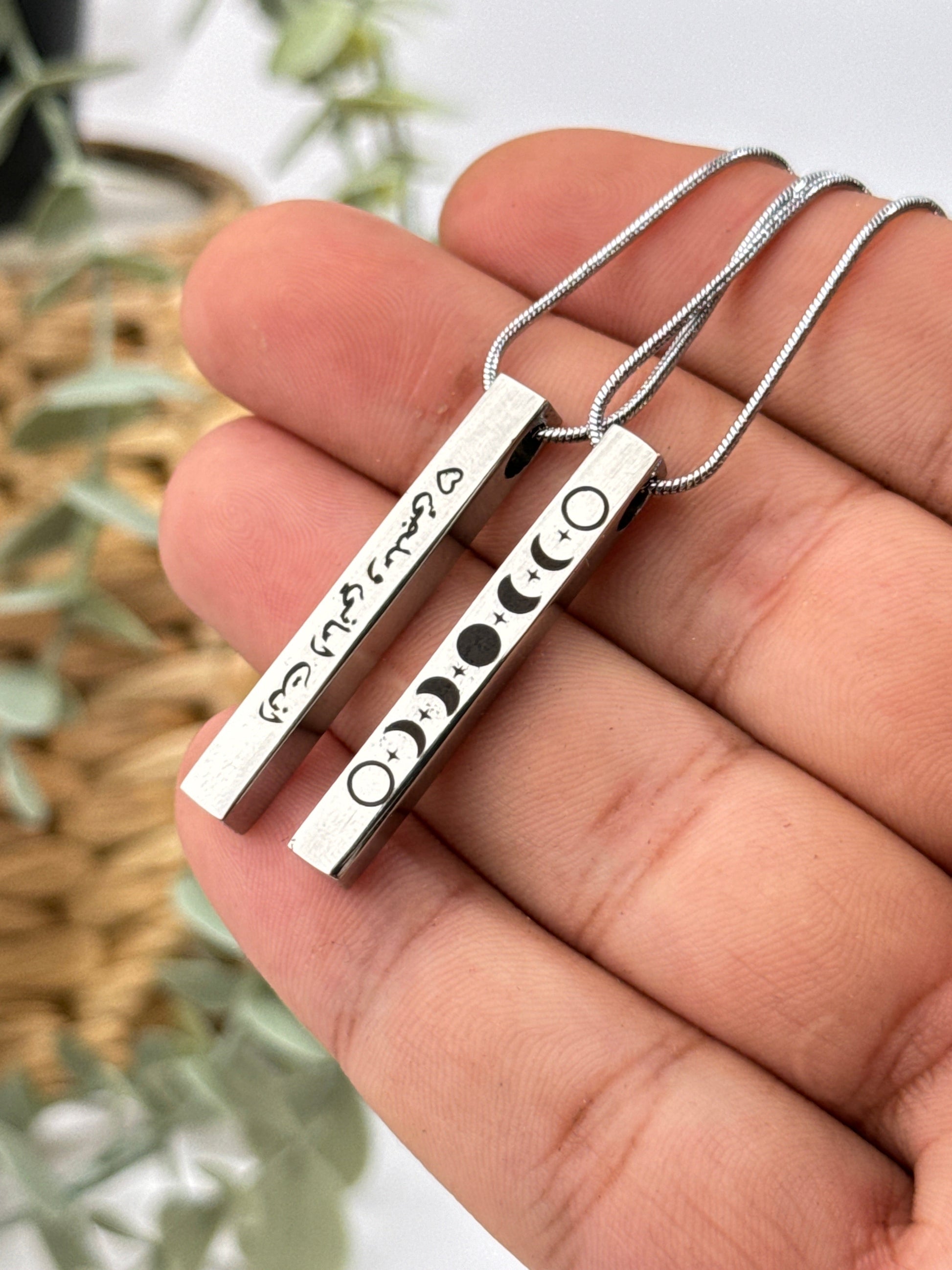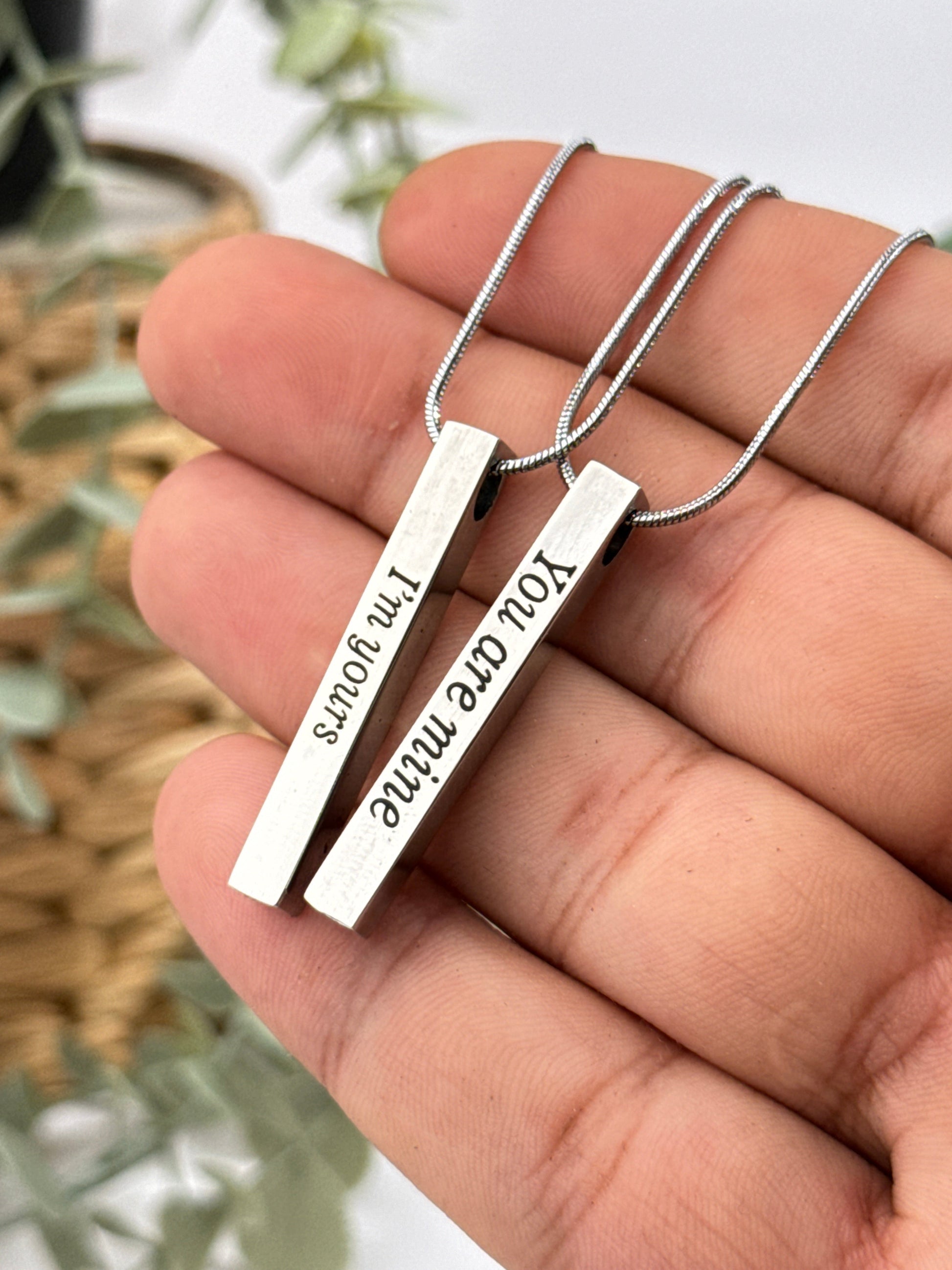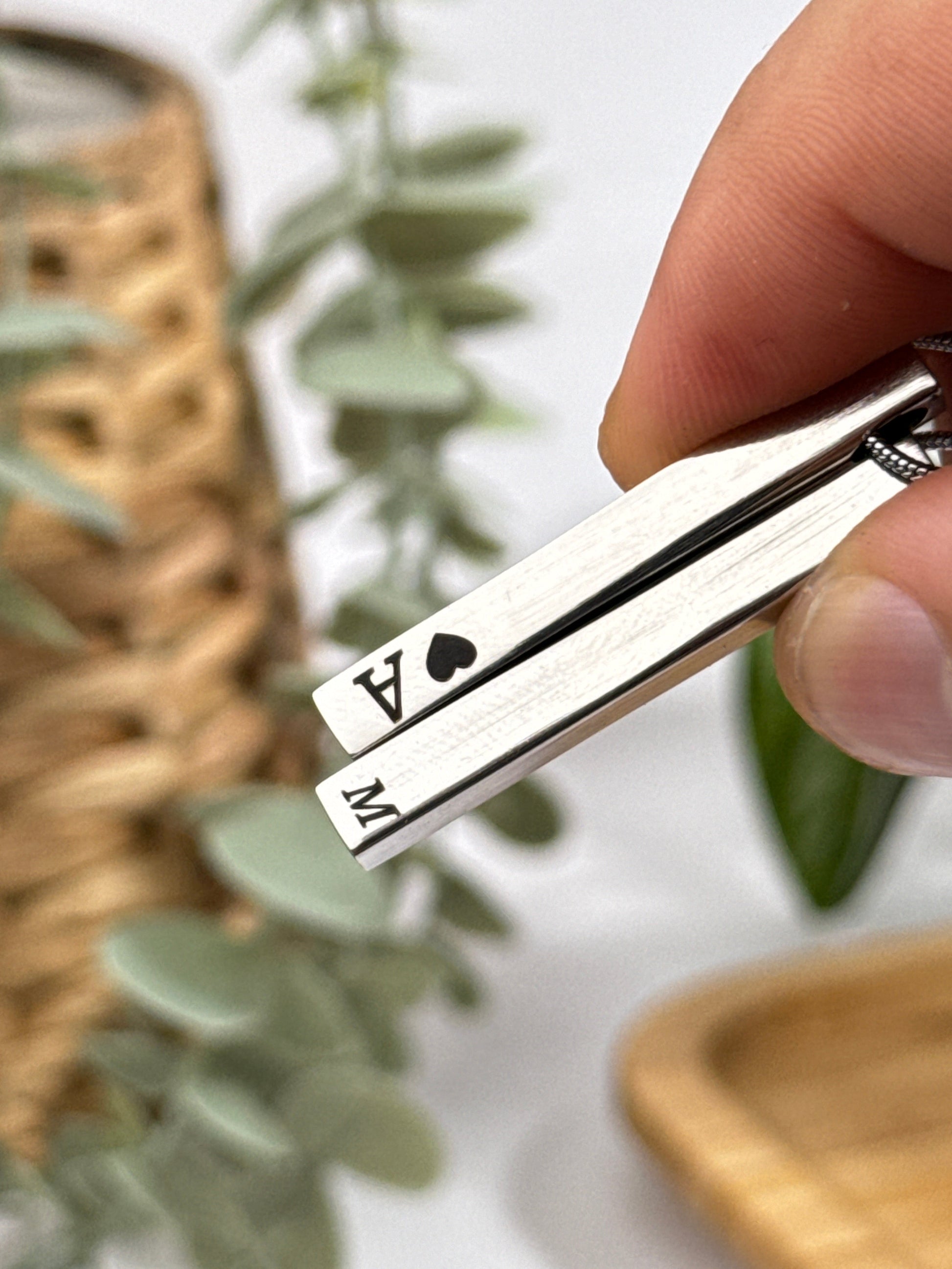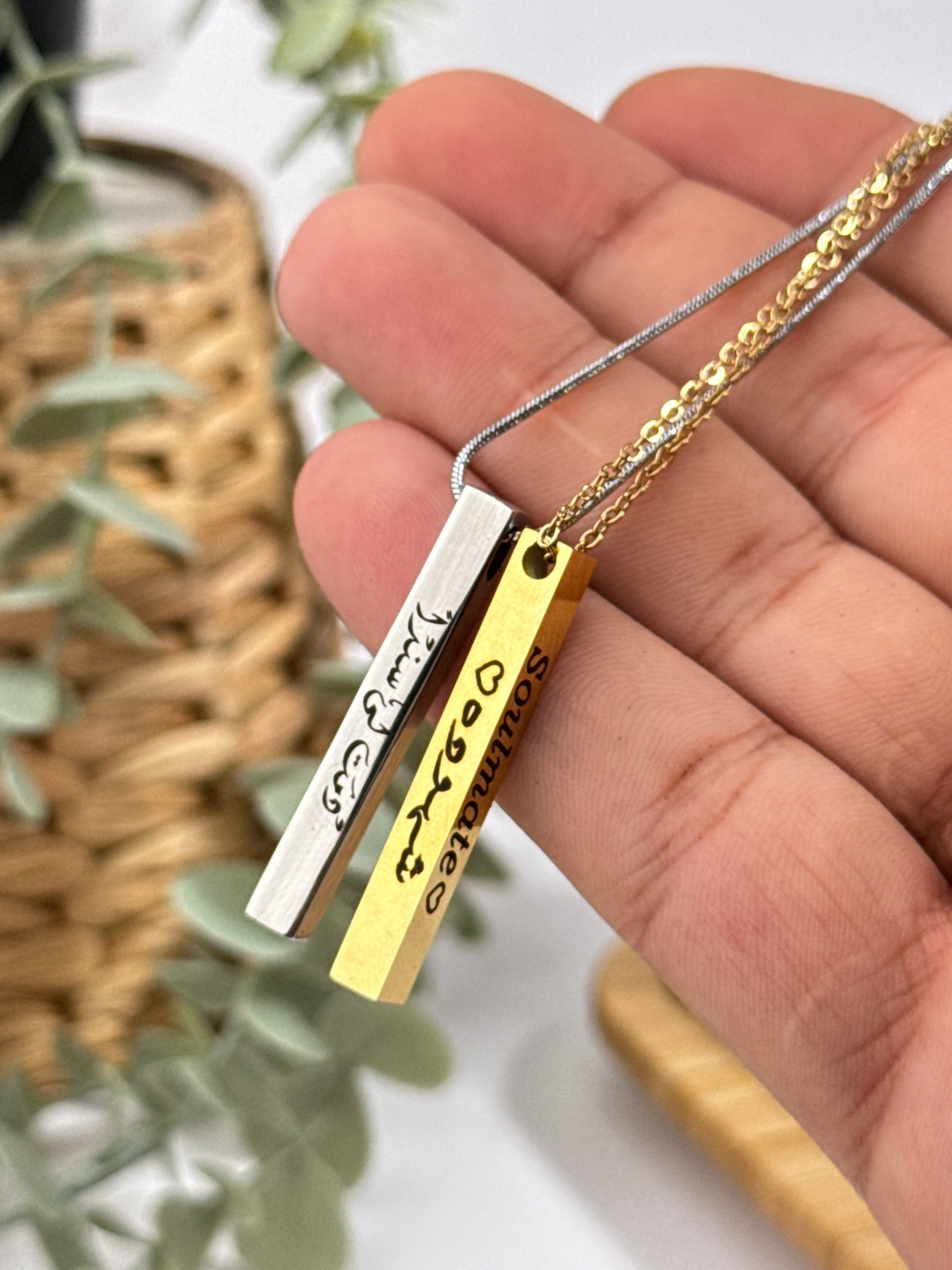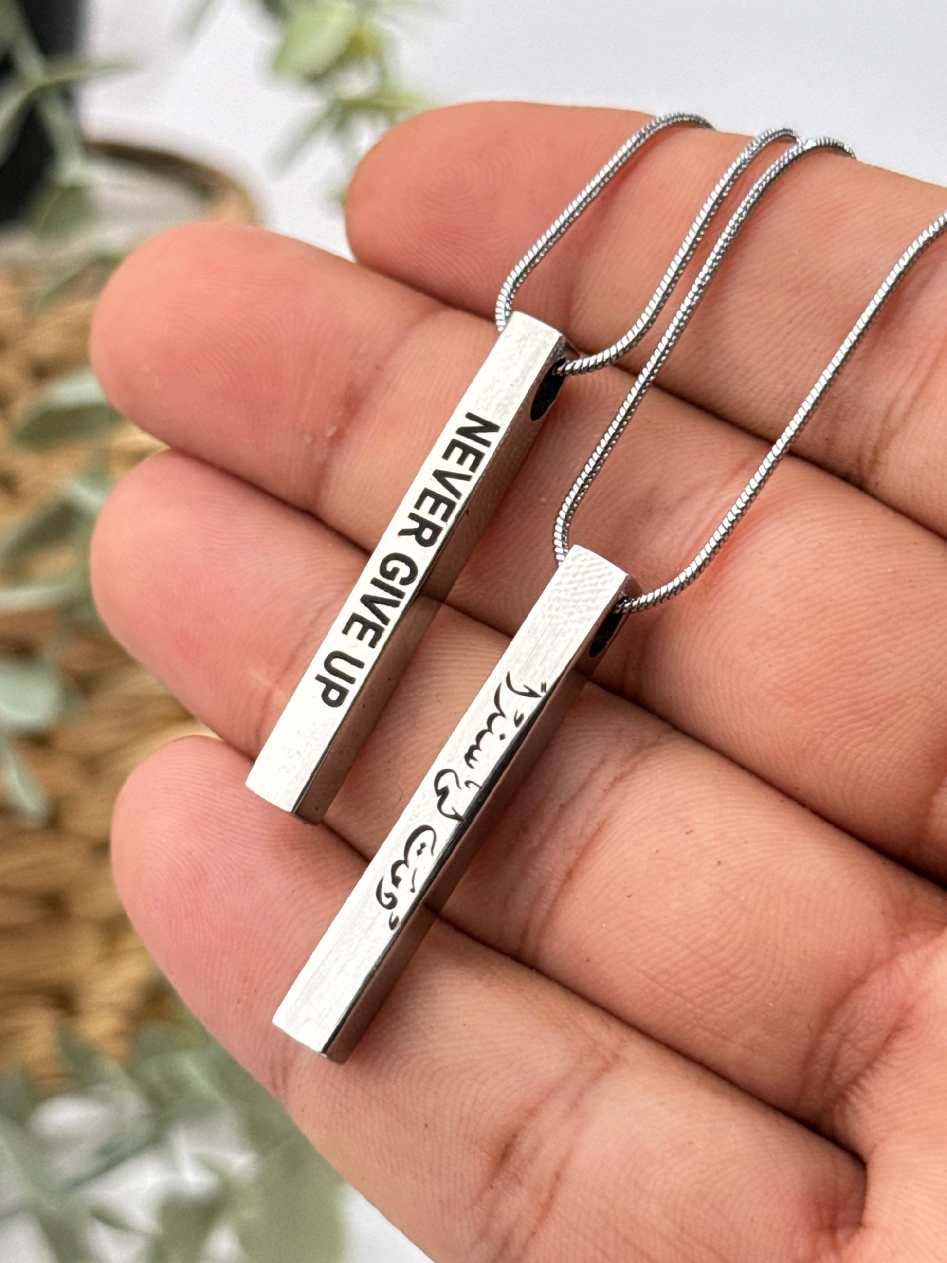 اصنع قطعتك الخاصة مع سلسلة بار ثلاثي الأبعاد بتصميم أنيق وفريد، يتيح لك نقش رسائل أو أسماء أو تواريخ مميزة على جميع الجوانب الأربعة.